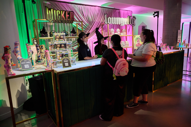 Guests could get a free Loungefly Wicked: For Good bag of their choice and explore other Wicked-inspired products from Sock Candy, Funko, KISS nails, and DIFF Eyewear!